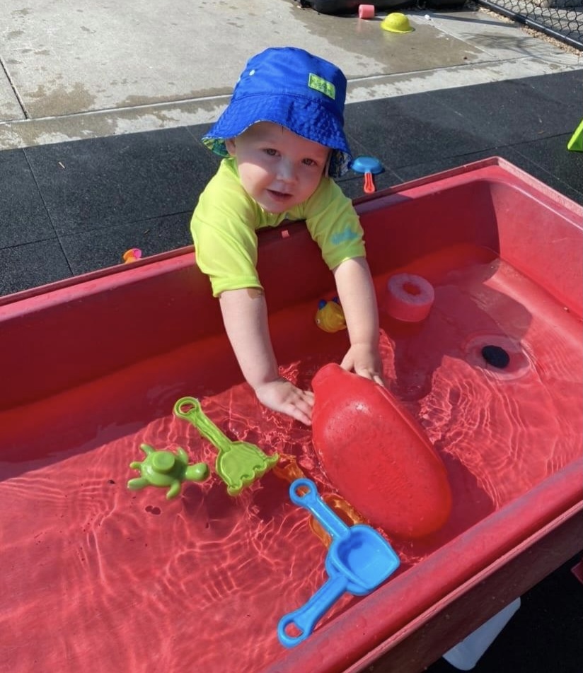 The Toddler Room is a very busy place. Besides working very seriously on potty training, we have lots of activities going on. Circle Time happens daily, and includes singing, reading stories, learning to count and recognize written numbers, singing the alphabet and recognizing written letters, and recognizing colors and shapes. We continue to work on our sign language, and we are learning some Spanish words as well. You’ll see lots of art projects happening in the toddler room, as well as dramatic play, sensory, and large motor activities (to exercise those fast-growing large muscles). At this age we work a lot on social skills, helping our toddlers learn to share, and teaching appropriate ways of handling their emotions.
